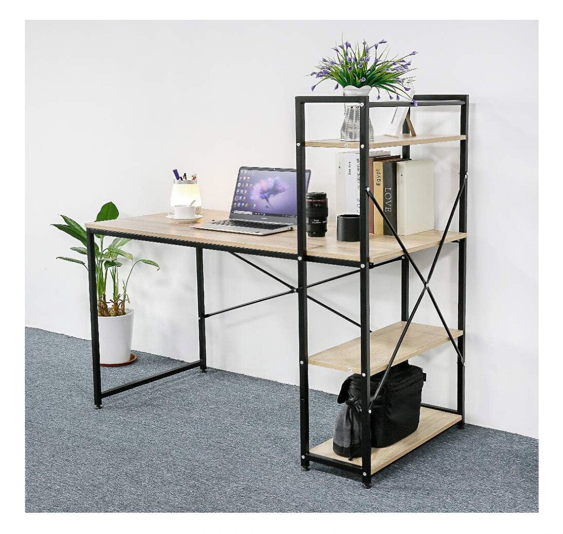 Bureau de Travail avec Étagères - Bois et Métal - Poste de Travail Stable - Étagères de Rangements -