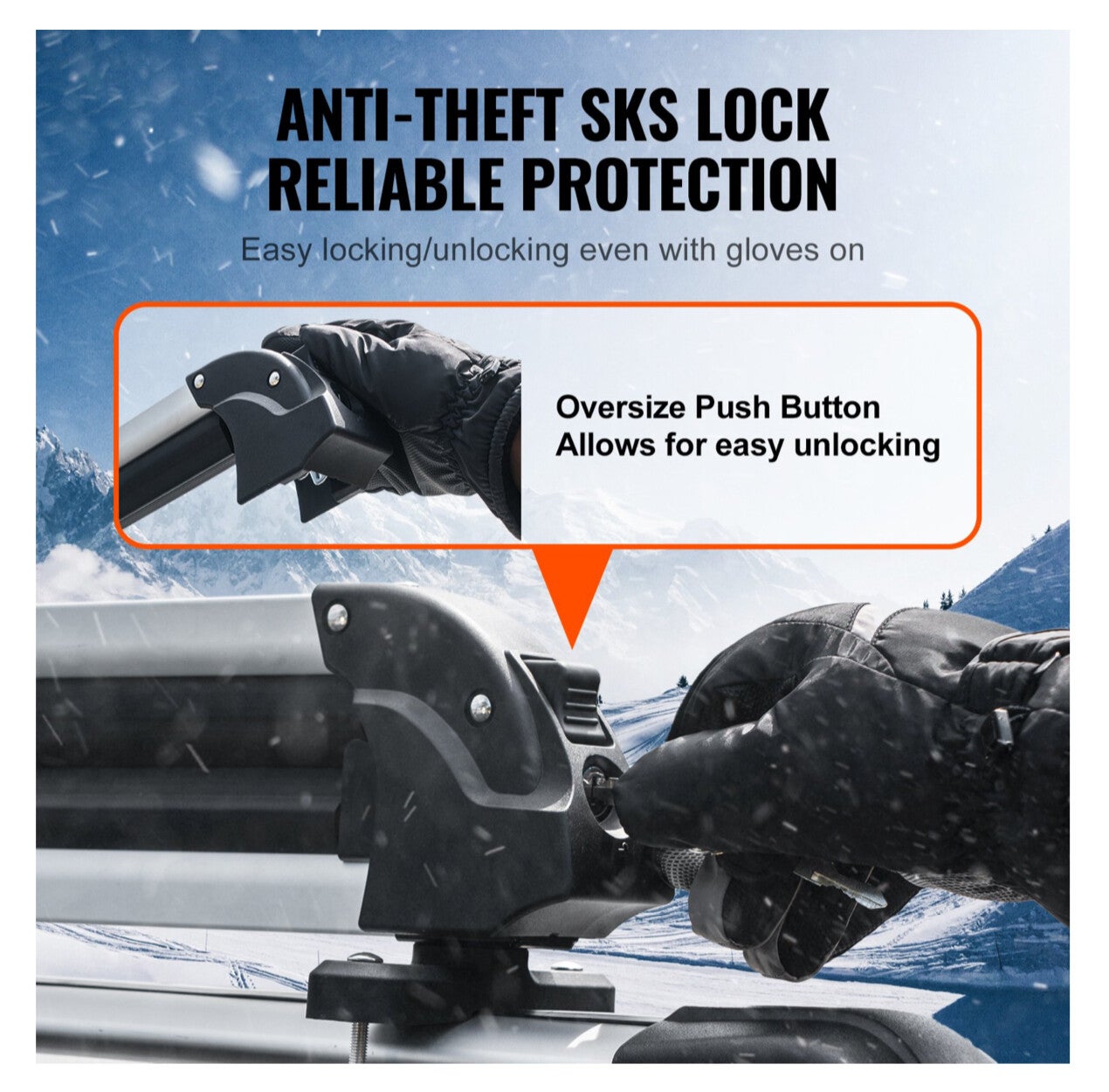 VEVOR Porte-Skis Planche à Neige sur Barre de Toit 80,5cm Universel avec Serrure